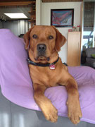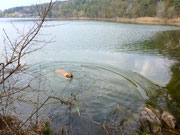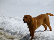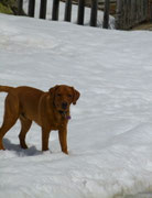 Emil hat sich mittlerweile zu einem tollen, ballverrückten Junghund entwickelt. Außerdem ist er ein richtiger Schmusebär ( von wem er das wohl hat J ). Mitte April ging es dann in den ersten Urlaub. Emil musste natürlich mit. Es ging eine Woche nach Südtirol. Im Auto hat er sich vorbildlich verhalten. Er hatte ja schließlich auch die ganze Rückbank für sich. Nach zwei kleinen Pausen in Südtirol angekommen, hat Emil erstmal das Hotelzimmer inspiziert und gleich den Sessel auf dem Balkon für sich beansprucht. Die nächsten Tage waren natürlich aufregend. Emil entdeckte die Berge und vor allem die Bergseen. Da hat er sich dann auch zum ersten Mal getraut schwimmen zu gehen, wenn auch beim ersten Mal nicht ganz freiwillig. Er wollte irgendwas fangen und platsch war er im Wasser und hat gleich mal das Tauchen ausprobiert J. Von da an war bzw. ist kein See / Fluss / Bach mehr vor Emil sicher. Und dass auf ein paar Bergen noch Schnee lag, hat Emil natürlich auch gefallen.