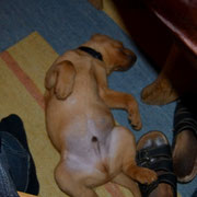 seinen neuen Korb gelaufen und hat weiter geschlafen. Irgendwann kam dann wohl der Hunger, der den Kleinen geweckt hat. Nach dem Essen kurz an den Pipi-Platz und danach die Wohnung unsicher