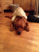 Eine kleine, echte zweibeinige Freundin habe ich auch schon: die Tochter von den übernächsten Nachbarn mag mich ganz doll. Sie ist so vier oder fünf Jahre und wir freuen uns immer ganz riesig, wenn wir uns mal sehen. Papa hat ihr versprochen, dass wir mal zusammen spazieren gehen, wenn sie mal Zeit hat. Übrigens heisst sie Juliane und hat auch schon ein Bild gemalt, Papa und mich mit einer langen roten Leine und Blumen drauf. Sie ist eine richtige Künstlerin.