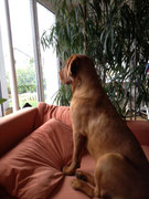 Sturm und Drang. Auf der anderen Seite ist er halt ungemein schmusig und lieb und kann auch brav sein, bleibt wie gestern für längere Zeit im Auto oder auch daheim, ohne sich aufzuregen.
