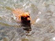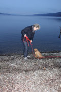 Zwei Konzerte habe ich auch schon mitgemacht - meine Mama singt in einem Chor, der ziemlich schwungvolle Lieder singt - aber beim ersten Mal war ich vom Schneetoben so erschöpft, dass ich das Konzert auf dem Schoß von Papa verpennt habe. Beim zweiten letzten Sonntag war es erst mal aufregender, weil viele Leute um mich rum waren, die mich bestaunt haben, als wäre ich der erste Hundewelpen in ihrem Leben. Kann ich nicht verstehen. Irgendwann bin ich dann auch wieder auf meinem Handtuch eingepennt, nur das dauernde Klatschen hat mich anfangs noch gucken lassen, was da denn wieder los ist. Aber dann hat es mich auch nicht mehr gestört - Papa war ja immer bei mir und Mama hab ich singen gehört. Vor dem Konzert war ich noch am Bodensee - zum ersten Mal wie so vieles zum ersten Mal in letzter Zeit. Ein kalter Wind, da blieb nur Bewegung, da ein versuchter Sitzstreik im Auto nicht geholfen hatte - Papa ist ja immer noch ein wenig stärker. Aber auch das wird sich ändern !!!