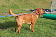 Leine, da muss ich immer nur neben ihm gehen, aber ich ziehe dann immer ganz brutal, was ihm wiederum gar nicht gefällt. Hach - das sind dann so'n paar dämliche Trainingseinheiten, die ich gar
