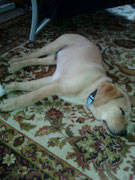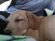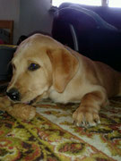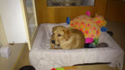 Lenny hat die Autofahrt sehr gut überstanden. Er hat fast nur geschlafen und war beim Autofahren sehr entspannt. Er hat sogar einmal auf einem Rastplatz zwischendurch Pipi gemacht. Zu Hause