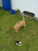 Rundum, wir haben das Gefühl es passt. Es macht Riesenspaß mit ihm. Er ist einfach ein Schatz, den man liebhaben muss. Und heute gehen Kater und Hund auch schon ganz anders miteinander